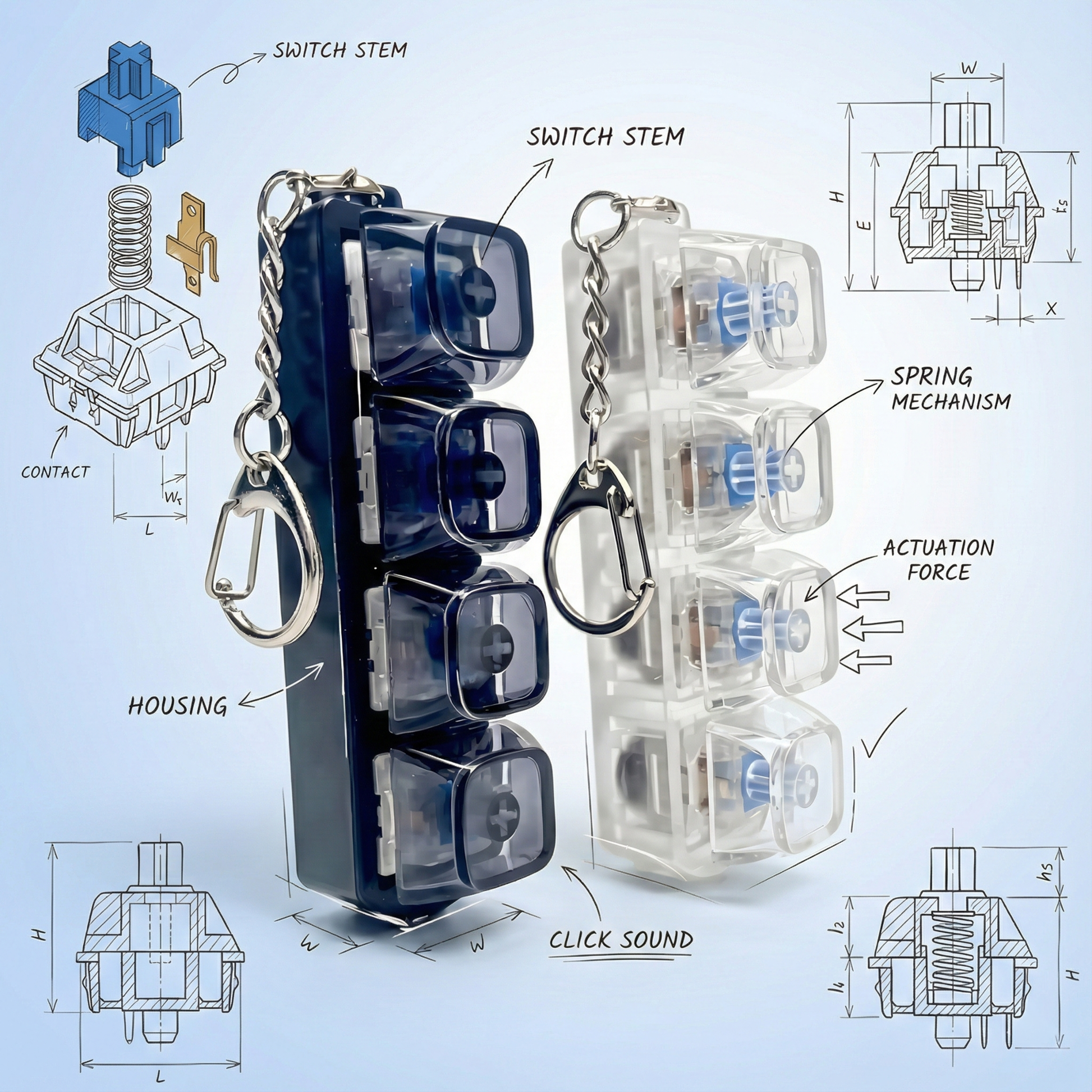 Swap keycaps anytime — different colors, styles, and textures. Make your fidget uniquely yours with every click.